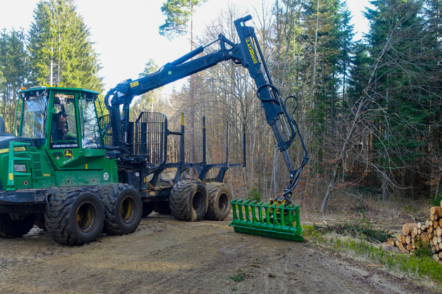Šepečių grėblys ekspeditoriui, smulkintuvui, miško ruošos priekabai, miško kirtimui, kombainui, miško ruošos priekabai ir kt.