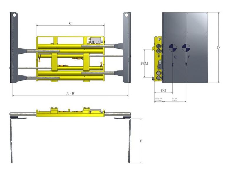 Nuėmimo griebtuvai išnaudoja galinę važiuoklę su pora siauro profilio sienelėmis. Kai kuriais atvejais kai krovinys yra pakrautas tarkime šaldytuvais, kad išnaudoti visą vietą treileryje jie turėtų būti sukrauti vienas ant kito. Tomet susiduriama su krovinio iškrovimo problemomis. 600mm griebtuvo gylis įgalina jį paimti krovinį išilgai iš treilerio sustatyti vertikaliai.